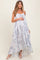 Light Blue Hi-Lo Spaghetti Strap Patchwork Ruffle Maternity Maxi Dress