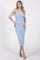Light Blue Off Shoulder Sleeveless Ruched Mesh Midi Dress