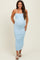 Light Blue Rib Knit Off Shoulder Fitted Maternity Midi Dress