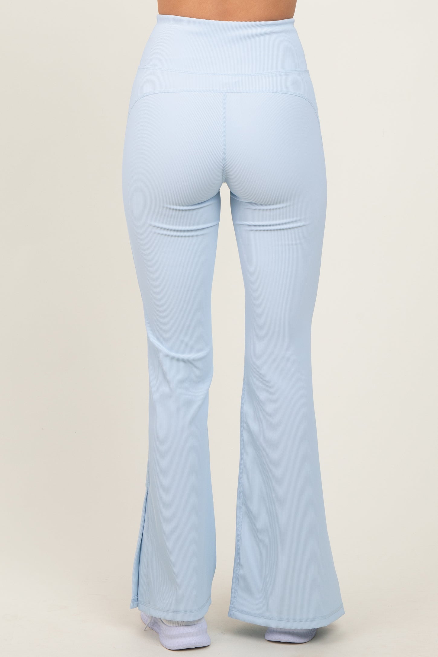 Light Blue Ribbed Split Flare Leggings