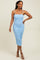Light Blue Ruched Mesh Sleeveless Midi Dress