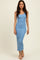 Light Blue Smocked Sleeveless Ruffle Hem Fitted Dress