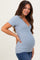 Light Blue Solid Ribbed Short Sleeve V-Neck Basic Maternity Top