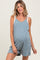 Light Blue Solid Ribbed V-Neck Sleeveless Front Pocket Maternity Romper