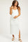 A striped knit maternity midi dress featuring a rounded neckline, adjustable cami straps, a side slit and double lining.