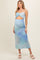 A tie dye maternity maxi dress with a front cut out, and adjustable straps. Double lined.
