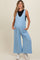 Light Blue V-Neck Wide Leg Maternity Jumpsuit