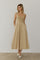 Light Camel Contrast Knit Poplin Sleeveless Midi Dress