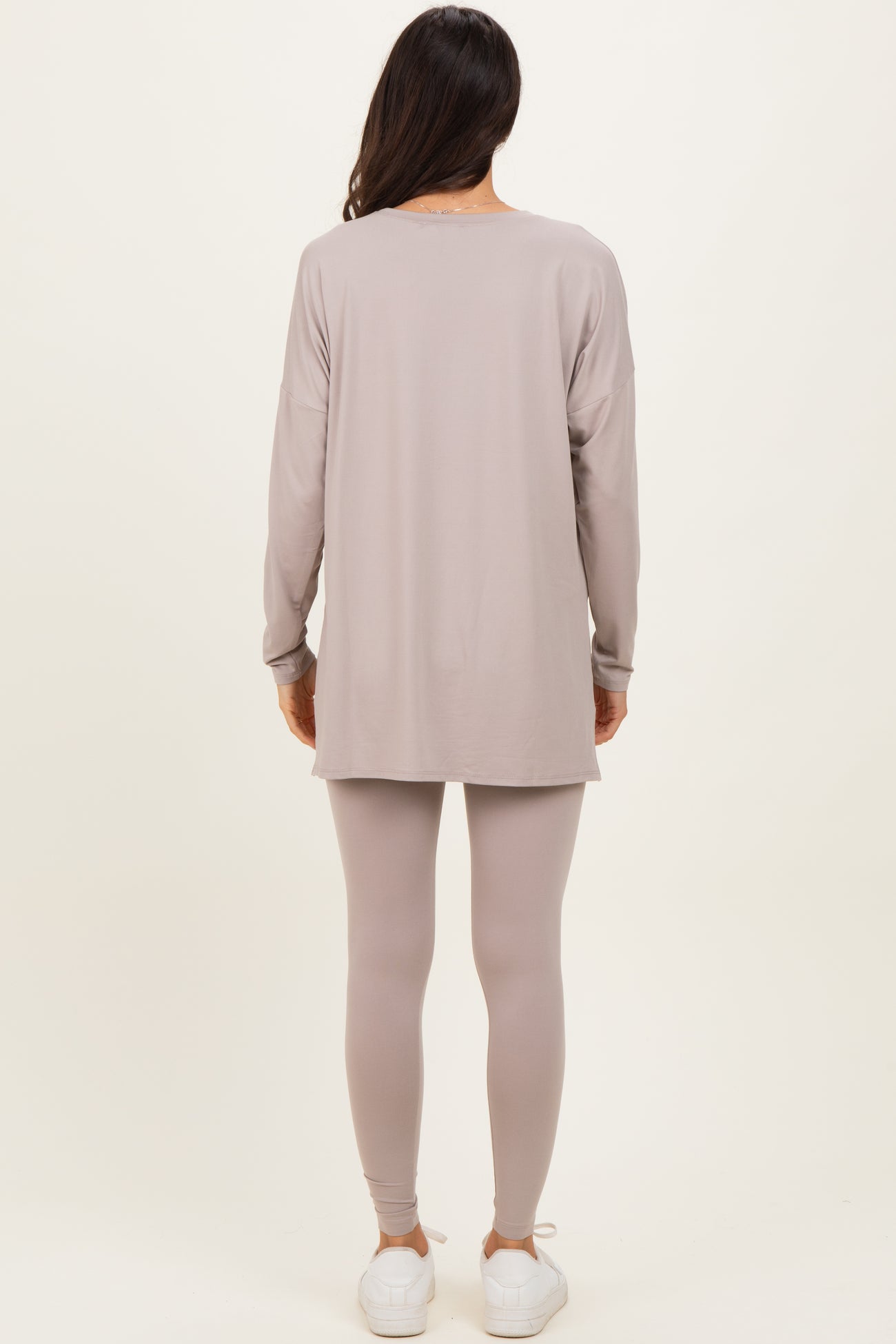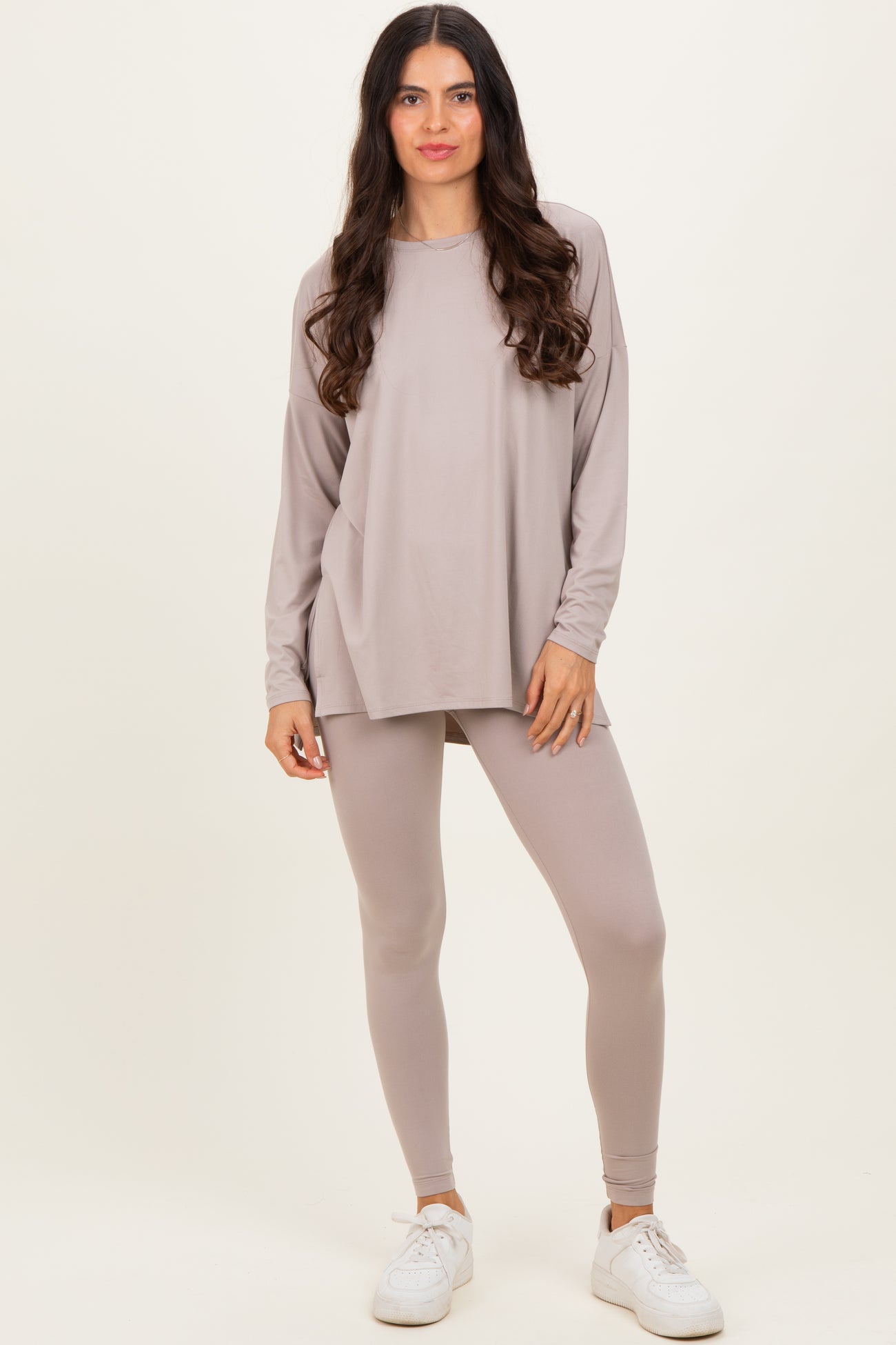 Light Mocha Brushed Knit Oversized Top and Legging Set