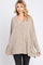 A soft brushed knit top with a v-neckline, exposed seams, drop shoulder long sleeves, side slits, and a hi-lo hem.