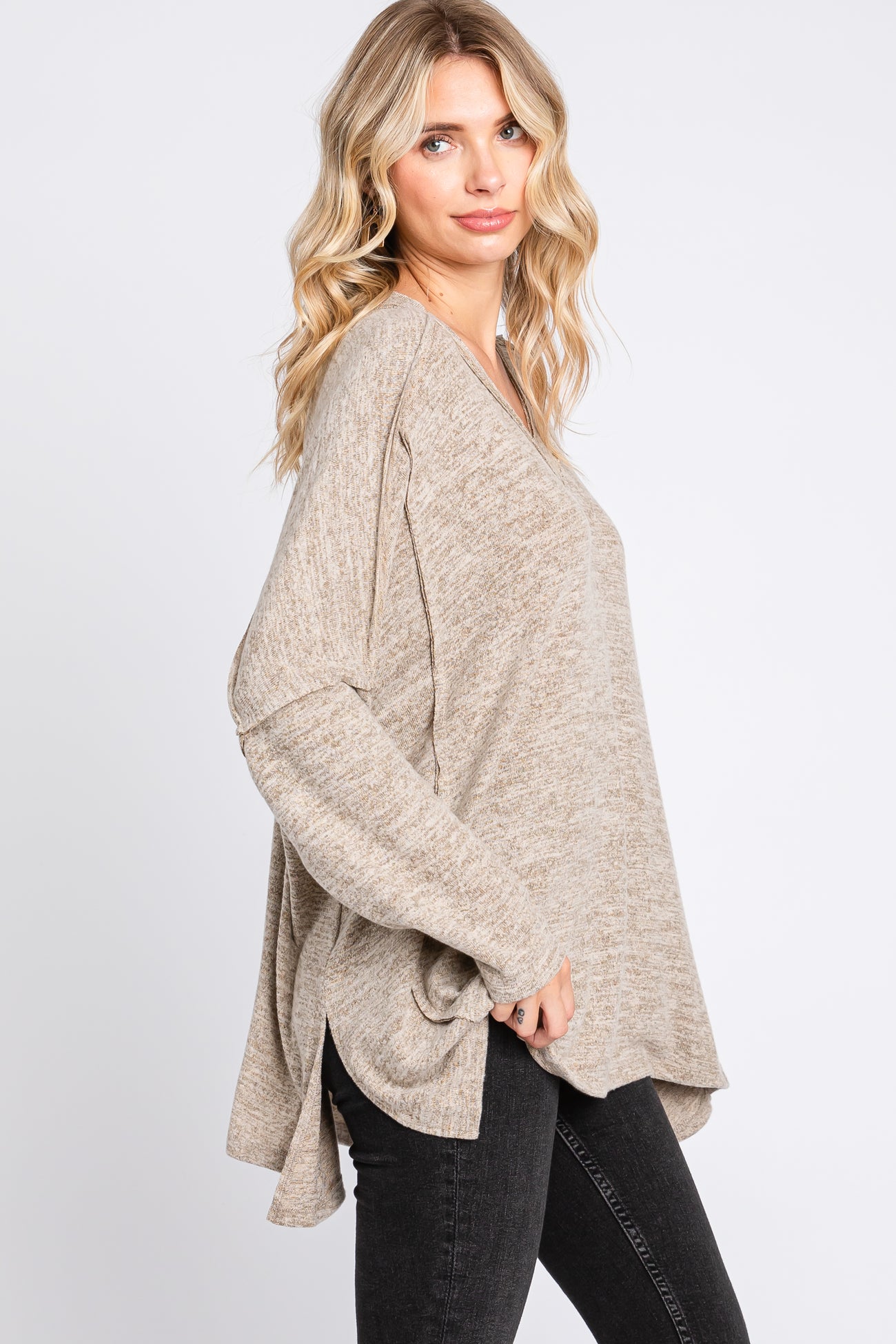 Light Mocha Heathered Soft Knit Long Sleeve Top