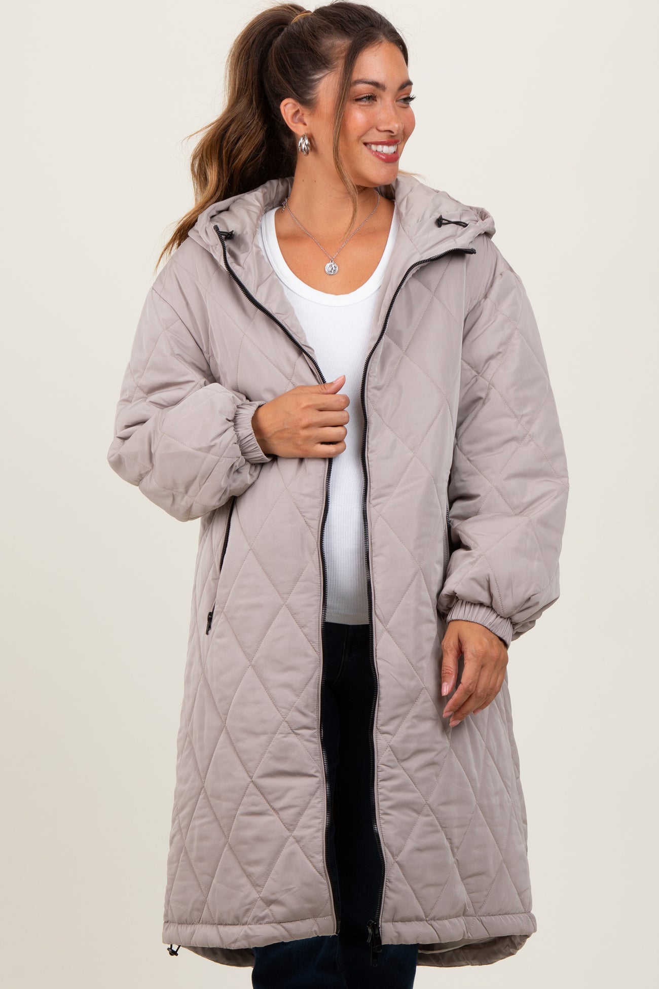 Light Mocha Quilted Long Maternity Puffer Jacket