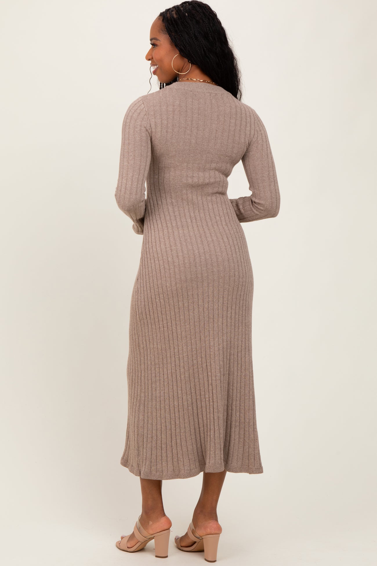 Light Mocha Ribbed Knit Midi Sweater Dress