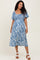 Light Navy Leaf Print Smocked Maternity Midi Dress