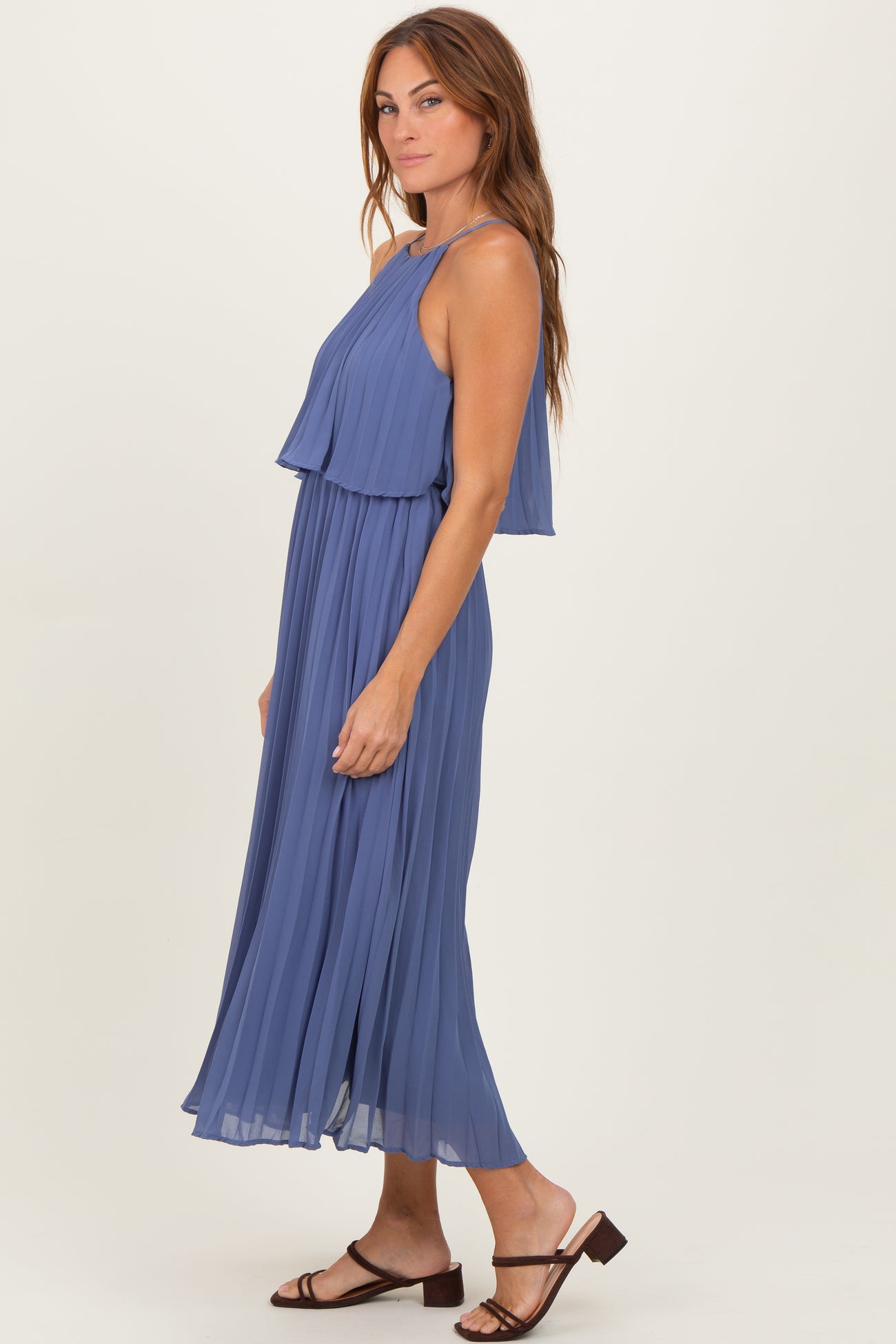 Elevate your wardrobe with this Light Navy Pleated Woven Midi Dress, featuring elegant pleats for a timeless silhouette. The halter neckline beautifully frames the shoulders, while the layered bodice adds dimension and a flattering fit. Crafted from lightweight woven fabric, this dress flows effortlessly with every step, making it perfect for both daytime events and evening occasions. The midi length offers a sophisticated touch, balancing style and comfort. Pair it with delicate sandals or heels and your favorite accessories for a chic, polished look that’s sure to turn heads.