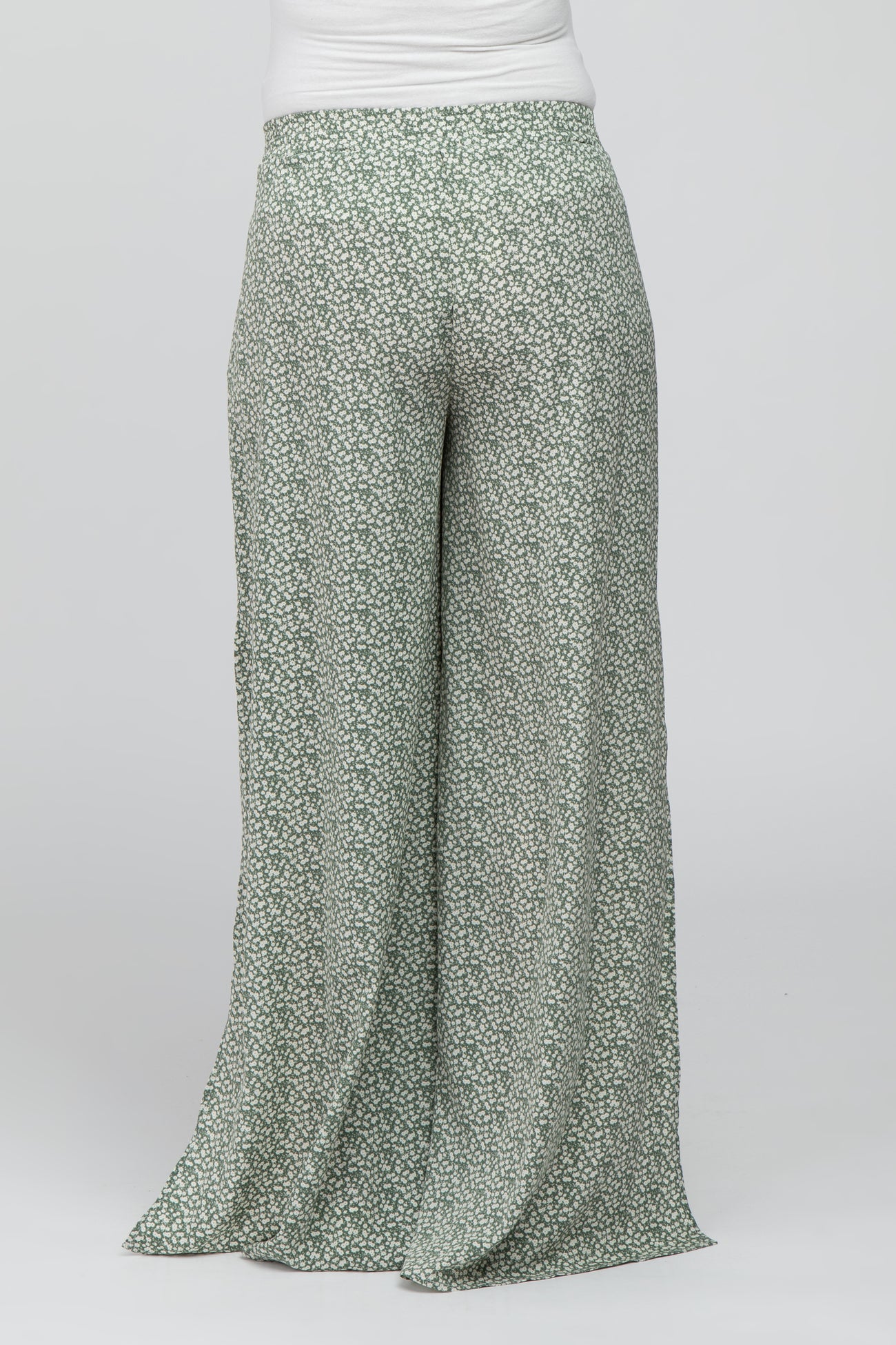 Light Olive Ditsy Floral Side Slit Maternity Pants
