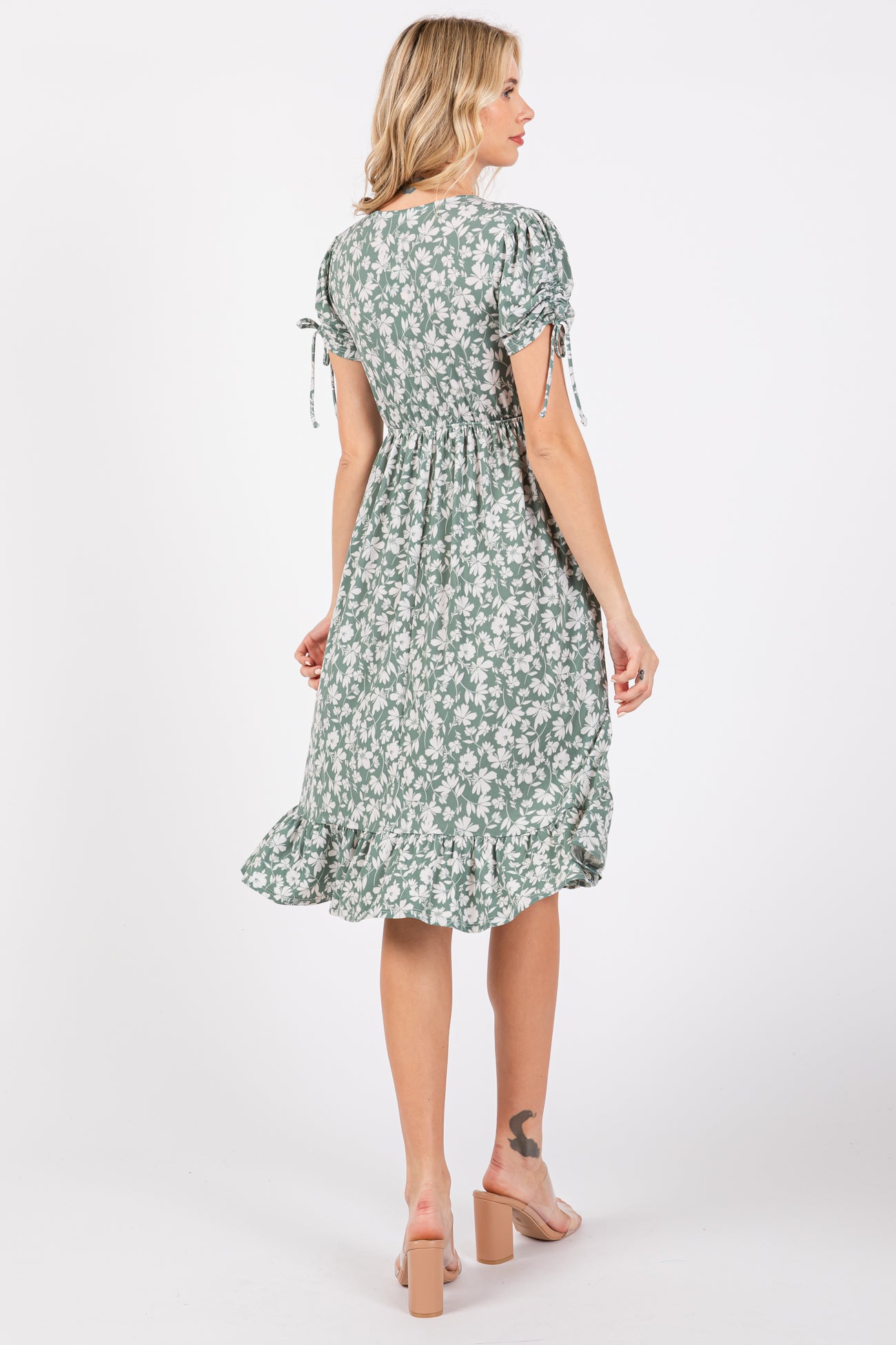 Light Olive Floral Wrap Midi Dress