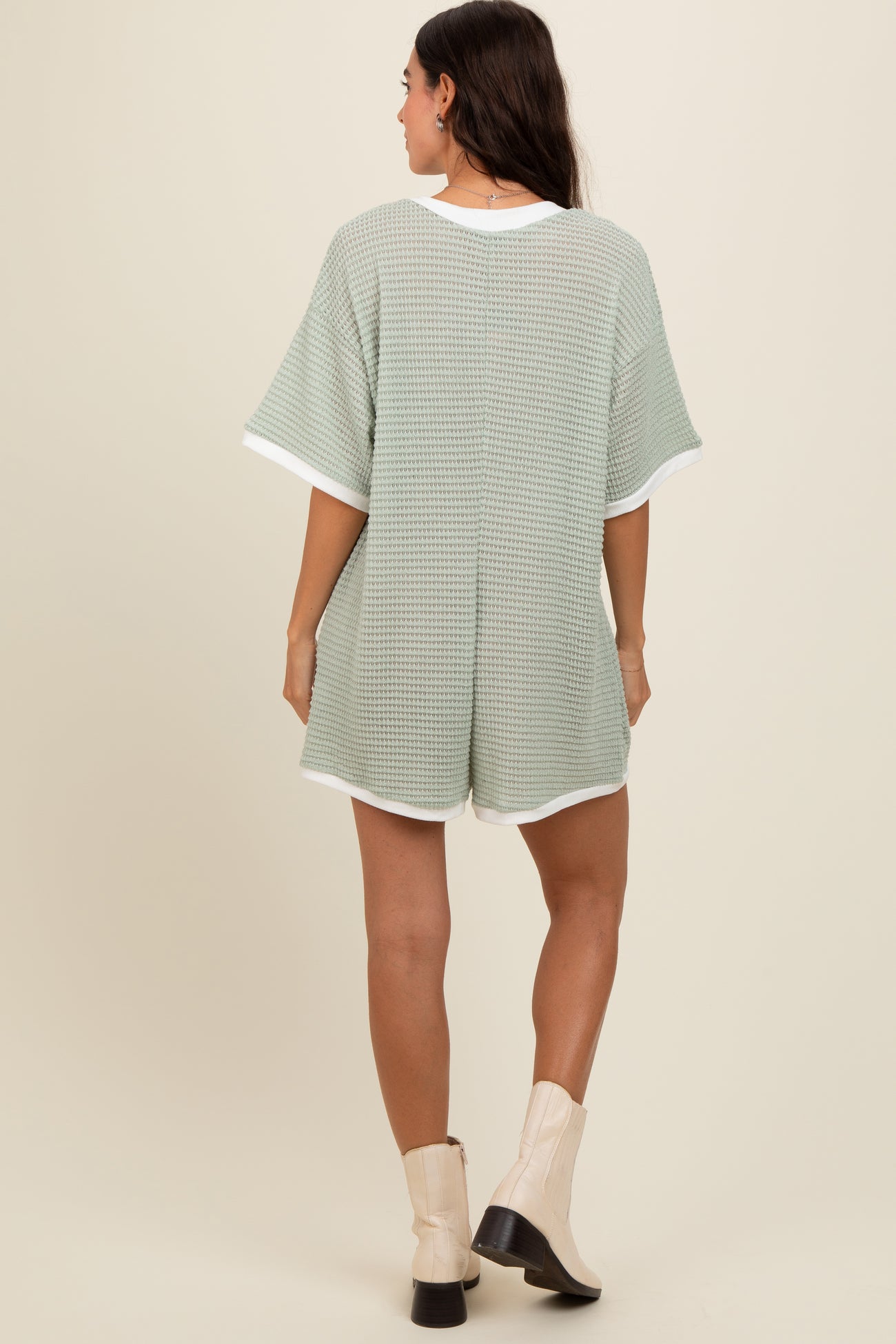 Light Olive Knit Contrast Trim Deep V-Neck Romper