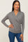 A solid nursing top featuring a wrap v-neckline and long sleeves.