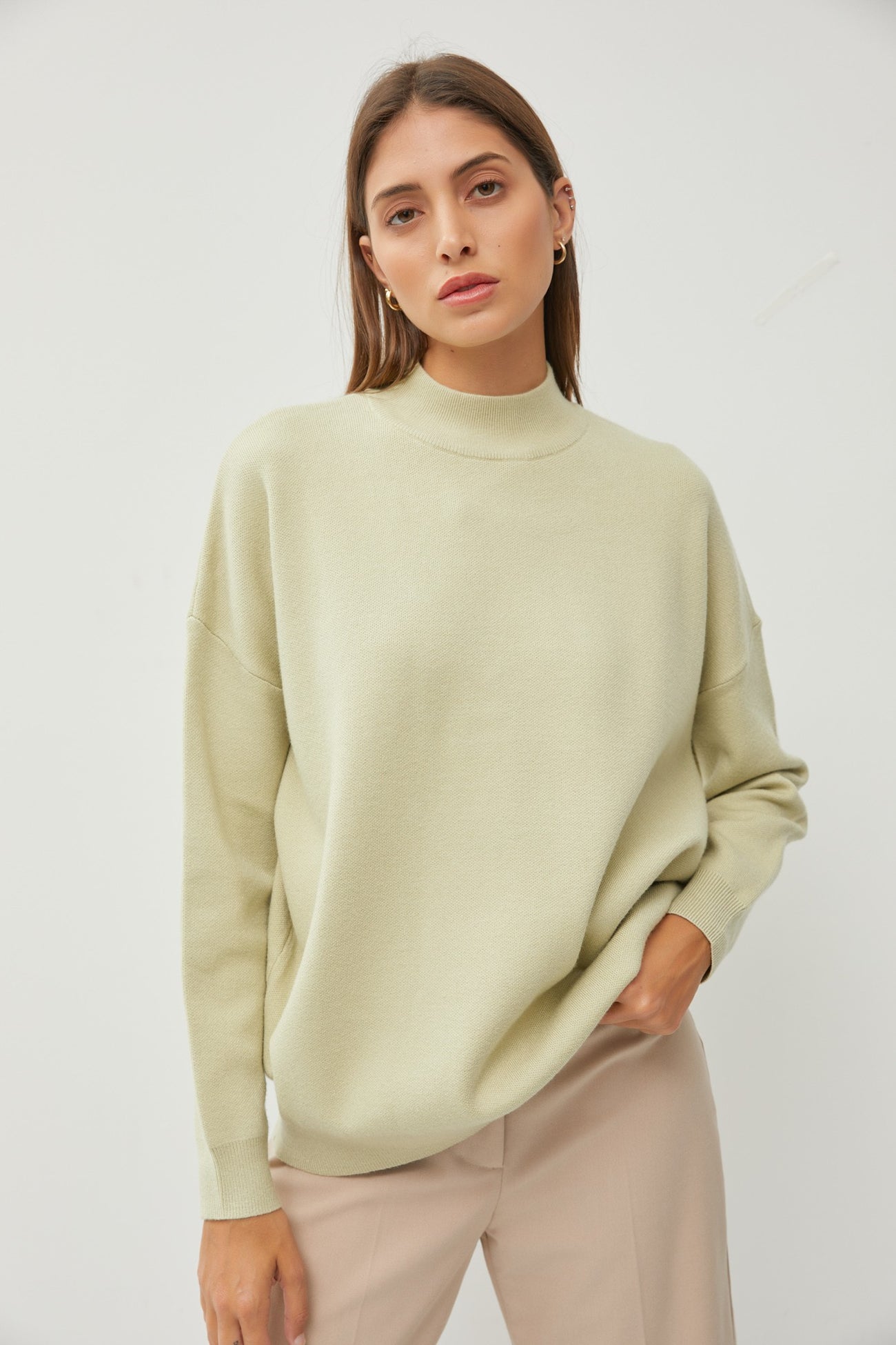 Light Olive Mock Neck Sweater