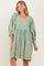 Light Olive Paisley Embroidered Bubble Sleeve Dress