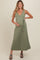 Light Olive Pleated V-Neck Waist Tie Sweater Maternity Maxi Dress