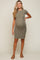 A ribbed fitted maternity dress featuring short sleeves, a side slit and a rounded neckline.