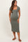 Light Olive Ribbed Short Sleeve Side Slit Maternity Midi Dress