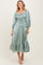 Light Olive Satin Smocked Cinched Bust Midi Dress