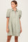 Light Olive Striped Puff Sleeve Mini Shirt Dress
