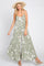 Light Olive Tropical Floral V-Neck Round Hem Midi Dress