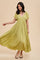 Light Olive V-Neck Flutter Short Sleeve Midi Dress