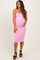 Light Pink Button Detail Thin Strap Fitted Maternity Midi Dress