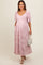 Light Pink Embroidered Leaf Print Striped Maternity Maxi Dress