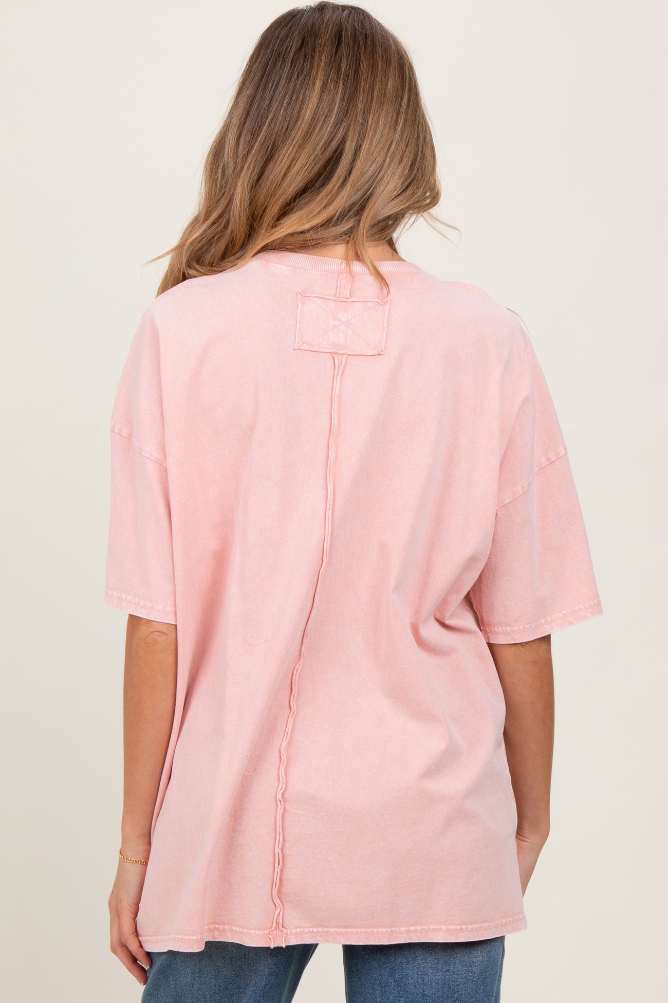 Light Pink Mineral Wash Crochet Pocket Maternity Top