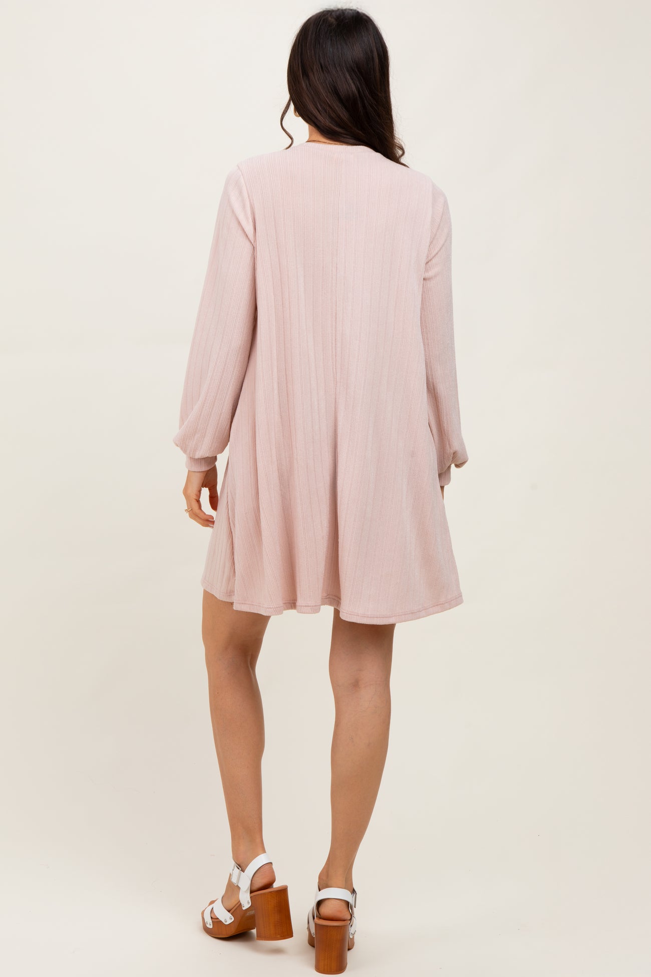 Light Pink Ribbed Mock Neck Bubble Sleeve Dress