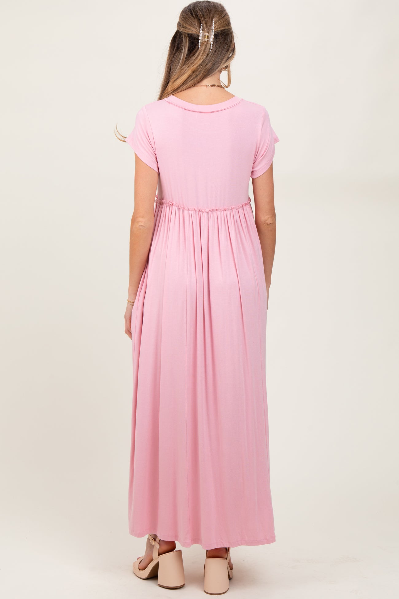Light Pink Short Sleeve Pocketed Maternity Maxi Dress