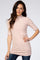 A soft, brushed knit top featuring a mock neckline and short sleeves.