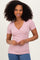 Light Pink Solid Ribbed Short Sleeve V-Neck Basic Top