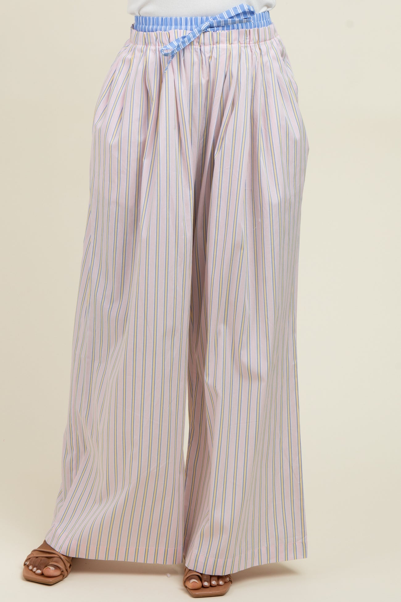 Elevate your casual wardrobe with these Light Pink Striped Drawstring Wide Leg Pants. Featuring a breezy wide-leg silhouette, these pants offer effortless comfort and style. The soft light pink fabric is adorned with subtle vertical stripes that elongate your legs and add a chic touch. The contrasting blue and white striped drawstring waistband not only provides a customizable fit but also adds a playful detail. Crafted from lightweight, breathable material, they’re perfect for warm days or relaxed evenings. Pair with a fitted tank or blouse and sandals for an easy, trendy look that moves with you. Stylish comfort made simple!