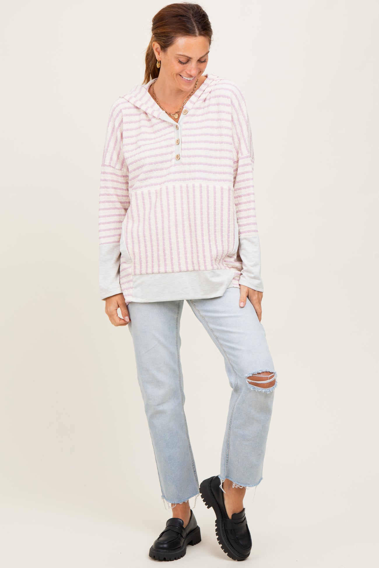 Stay cozy and stylish with our Light Pink Textured Stripe Button Up Hoodie. Featuring soft, lightweight fabric with a subtle textured stripe pattern, this hoodie offers both comfort and a chic look. The button-up neckline adds a trendy touch, while the hood provides extra warmth and versatility. Designed with contrasting cuffs and hem for added style, it pairs perfectly with your favorite jeans or leggings for a casual day out or relaxed weekend vibe. Ideal for layering, this hoodie is a must-have addition to your wardrobe for effortless, everyday fashion.