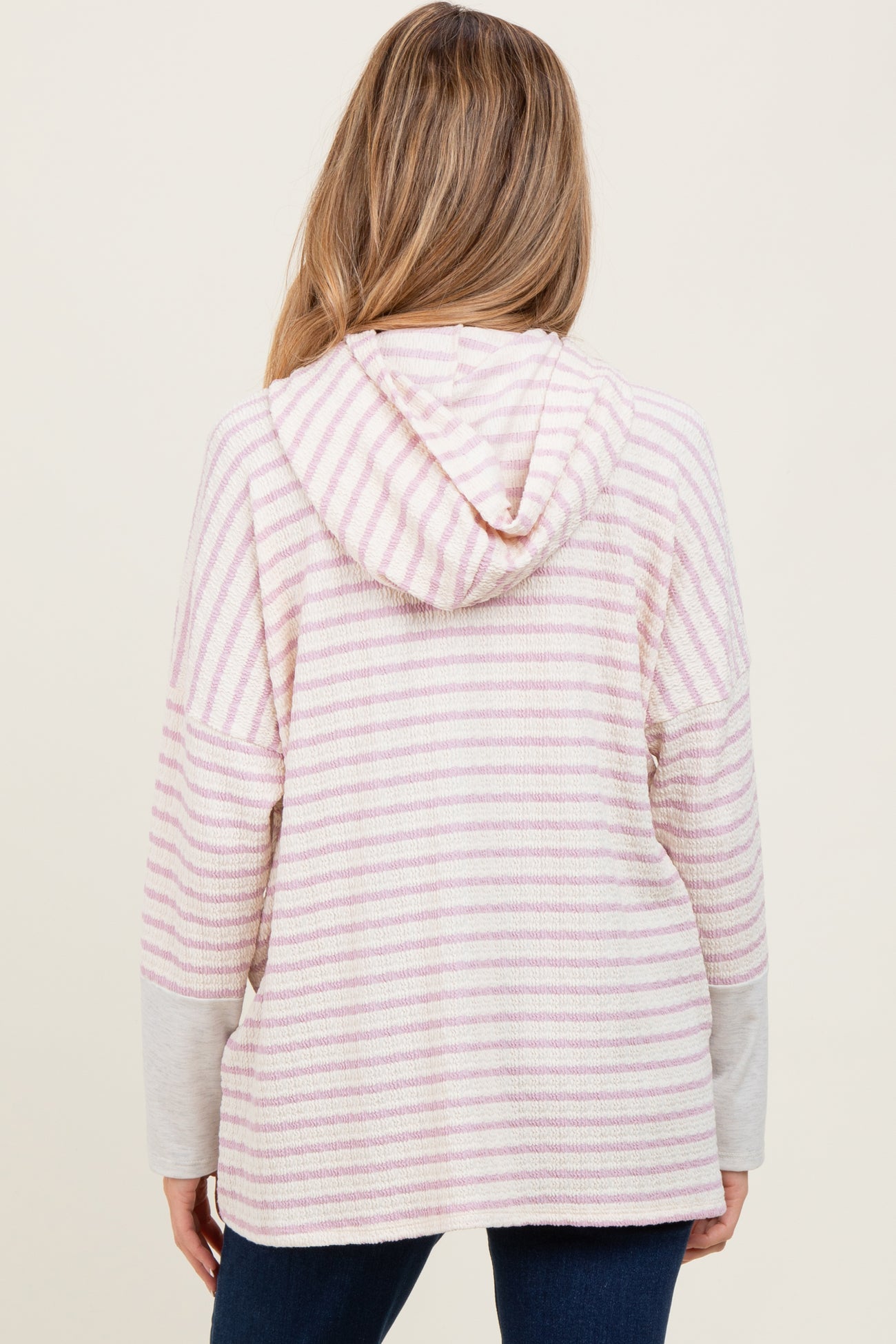 Light Pink Textured Stripe Button Up Maternity Hoodie