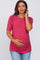 A ribbed fitted maternity top featuring side ruching, short fitted sleeves and a rounded neckline.