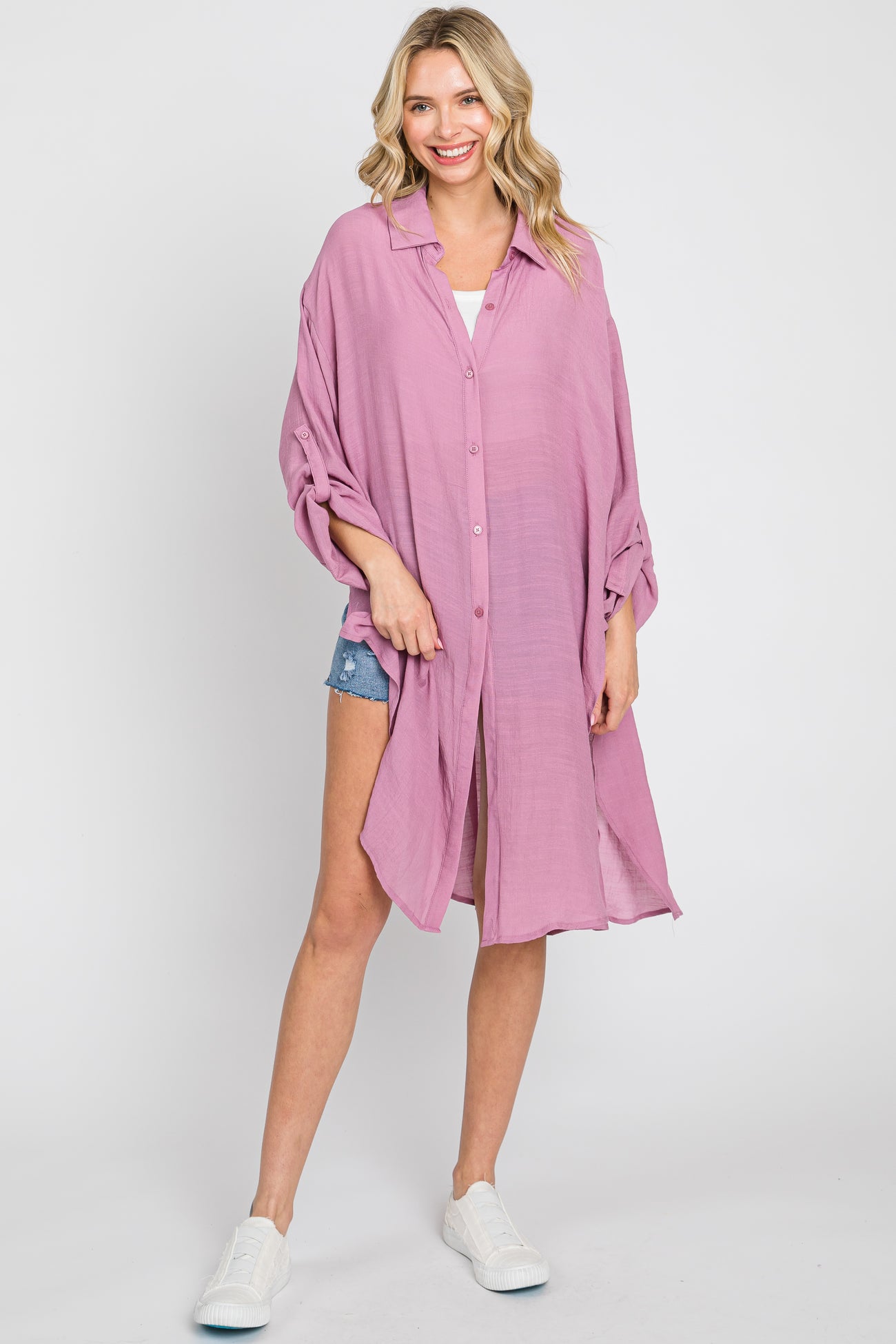 Mauve Button Front Side Slit Oversized Blouse