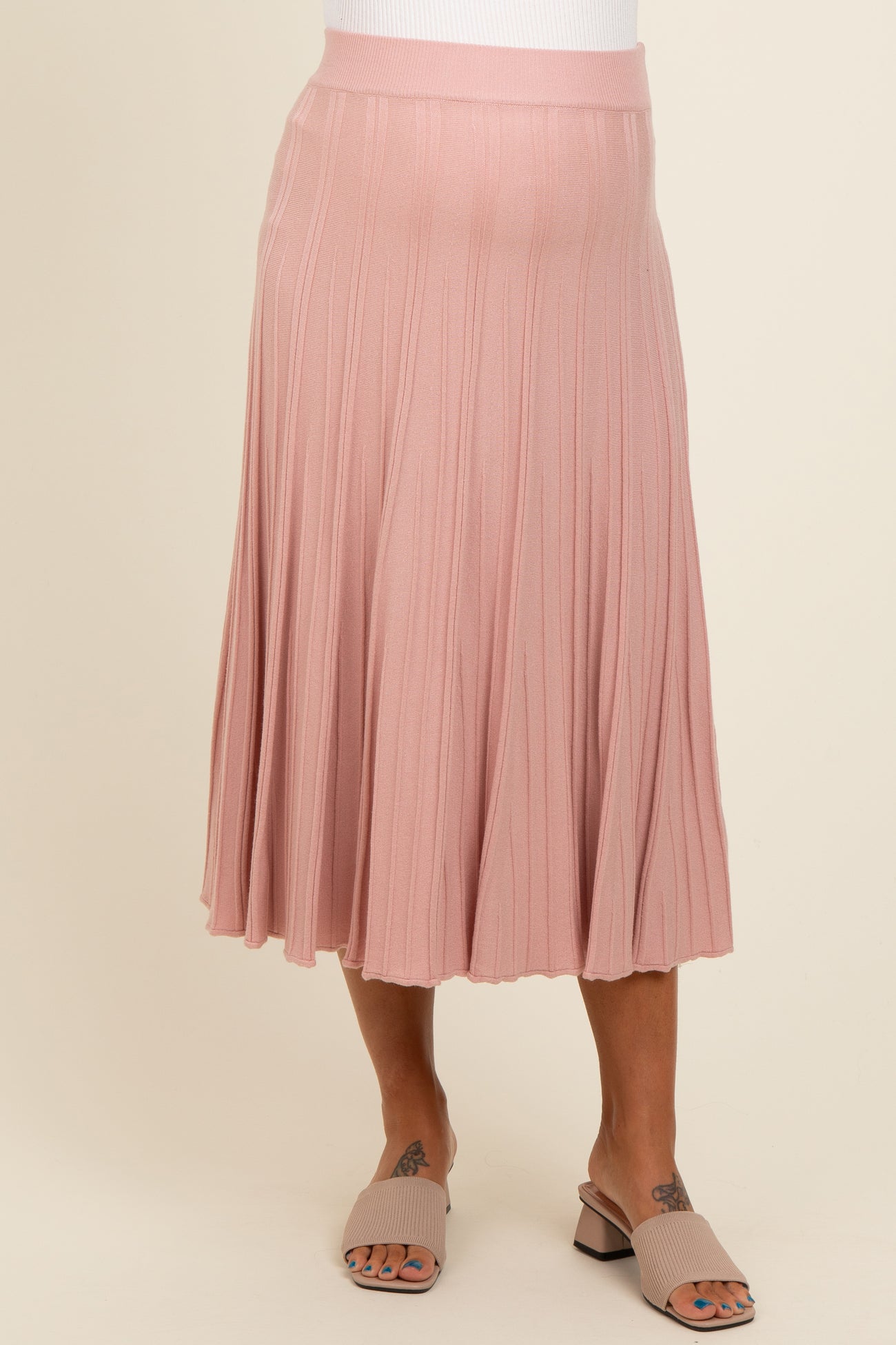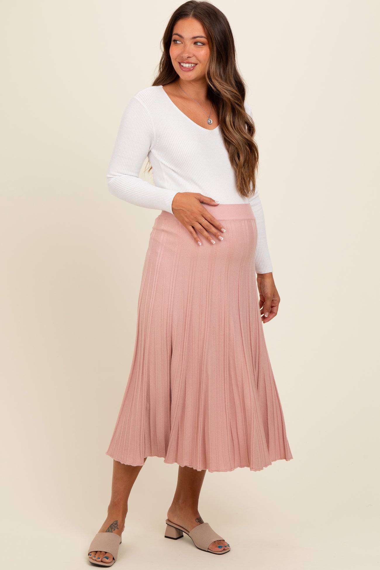 Mauve Ribbed Knit A-Line Midi Maternity Skirt