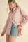 Elevate your casual wardrobe with our Mauve Striped Button Down Oversized Shirt. Featuring soft, breathable fabric and subtle white vertical stripes, this shirt offers a relaxed yet polished look. The oversized fit provides ultimate comfort, while the classic collar and front button closure add timeless style. Perfect for layering or wearing on its own, it pairs effortlessly with denim shorts or your favorite jeans. The single chest pocket adds a touch of practicality, making this shirt as functional as it is fashionable. Embrace easy, chic vibes with this must-have versatile piece. Available in multiple sizes for a perfect fit.