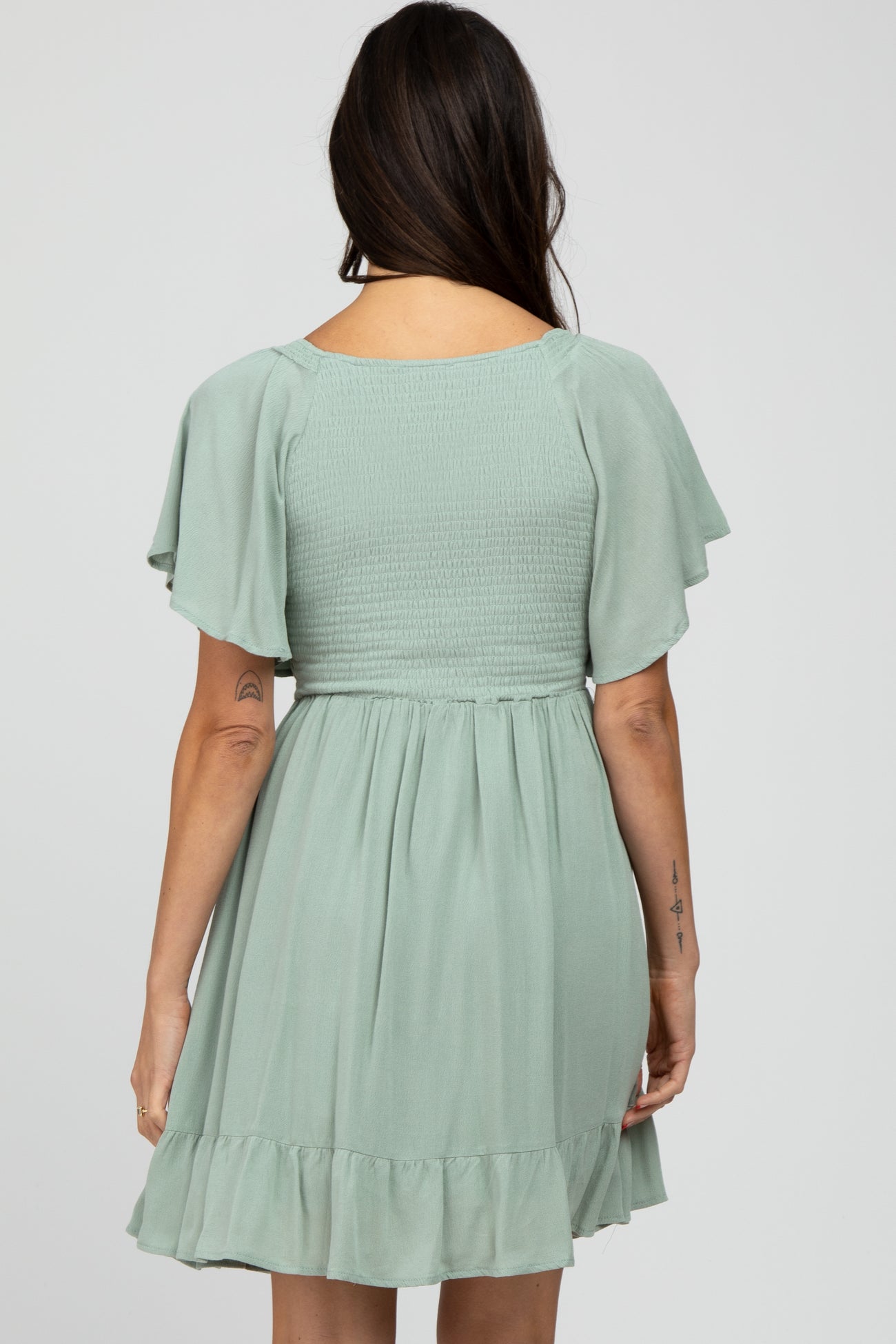 Mint Green Smocked Front Ruffle Hem Dress