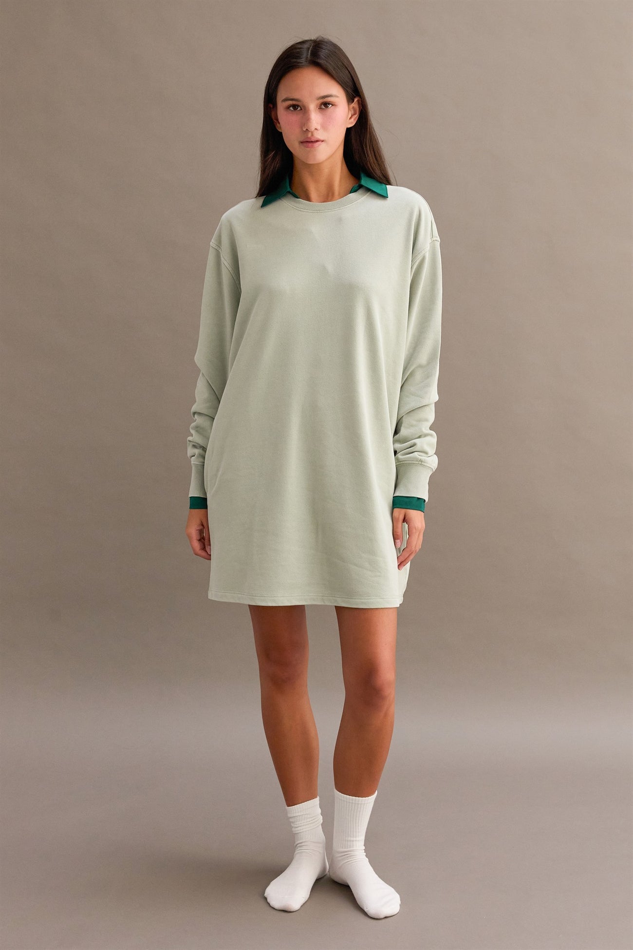 Mint Mineral Wash Oversized Maternity Sweatshirt Mini Dress
