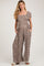 A floral maternity jumpsuit with a square neckline, flutter sleeves and side pockets.