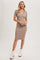 Mocha Knit Collared V-Neck Fitted Midi Dress